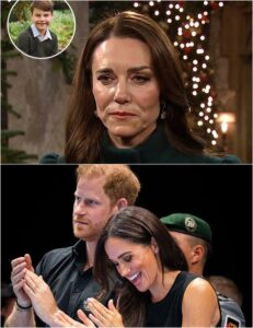 The Royal Clown Show: Congratulations to Prince Harry and Meghan! The long-hidden DNA results involving Prince George—kept secret for 11 years—are portrayed as finally revealed, with rumors said to be true. Princess Kate stands frozen at the doorway, hands trembling, while Harry and Meghan are depicted as “winning big”: “So it turns out the real father is…”